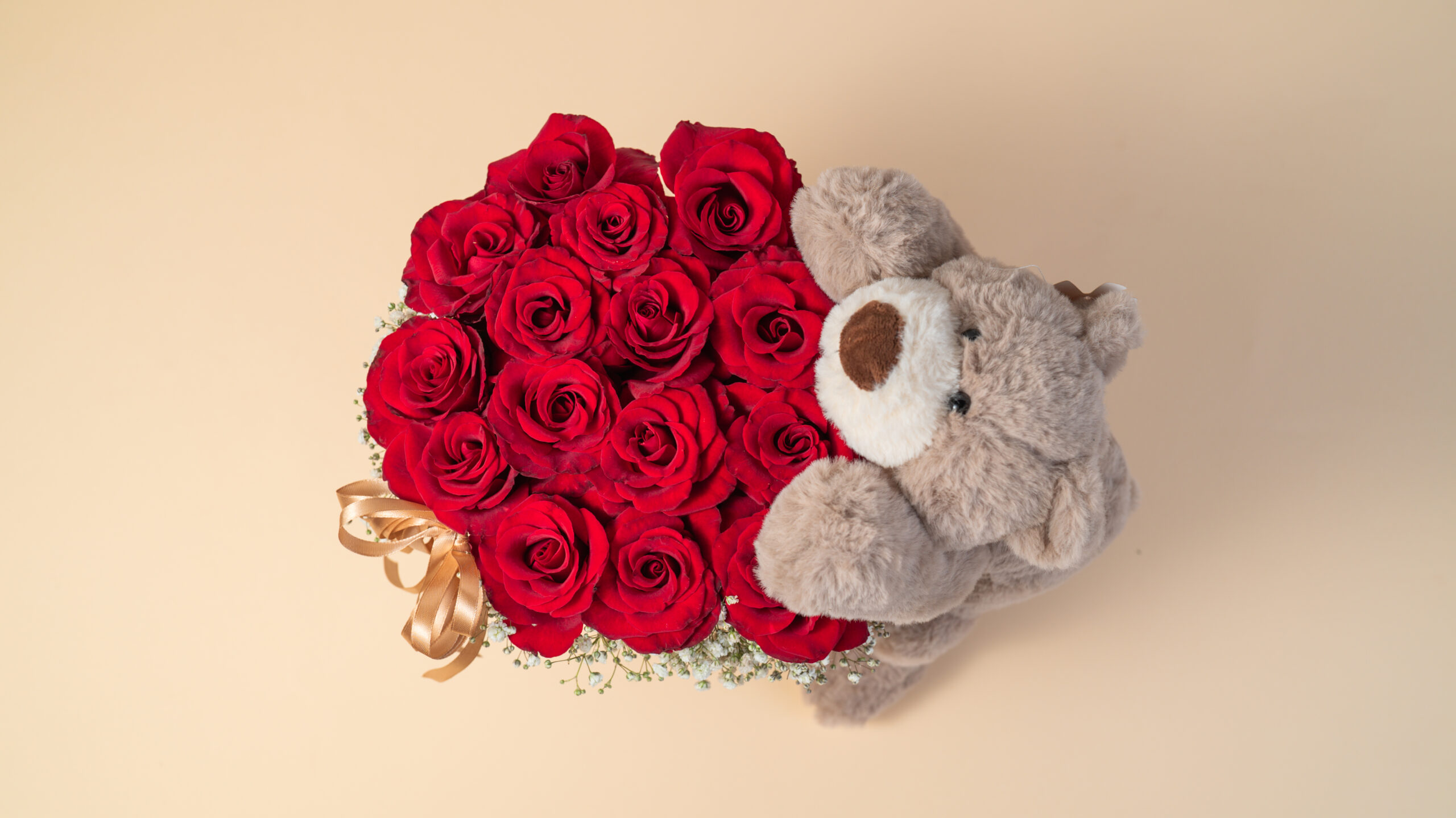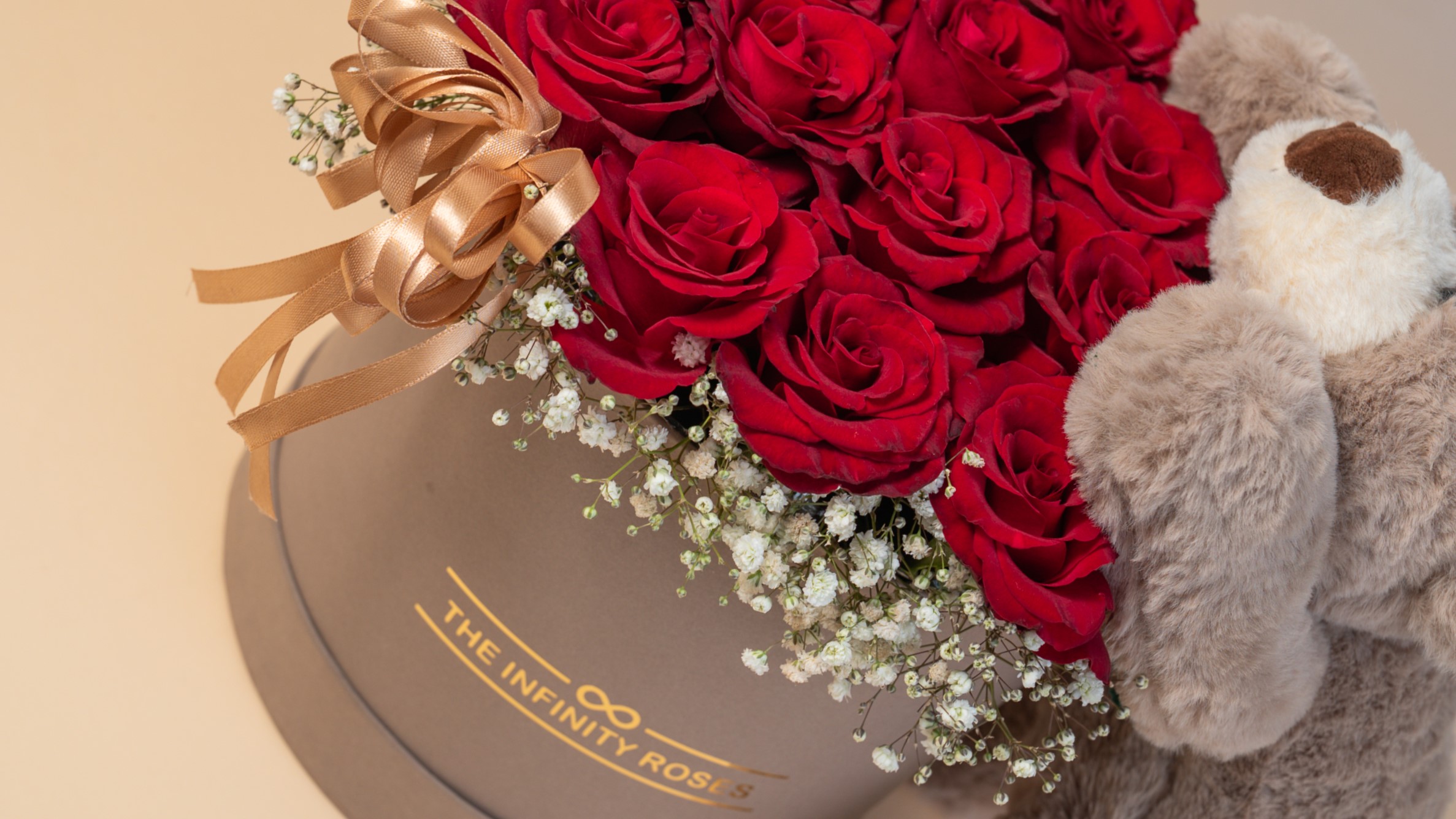 باقة فريدة من 20 وردة حمراء مع ورد صغير (بيبي فلور) أبيض