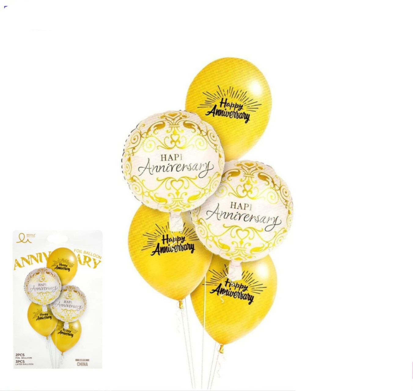 Group of 5 balloons 3 latex ballons & 2 foil ballon size 18inch ( Happy anniversary )