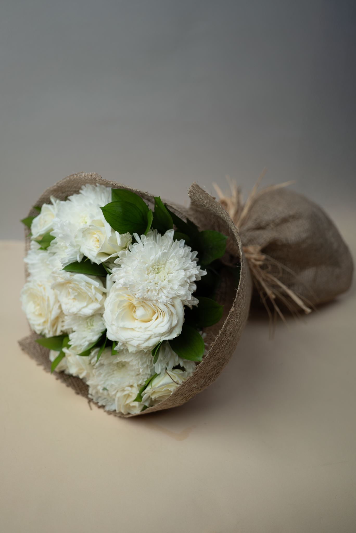 Mix between 6 roses & 8 kraiz wraped with Burlap wrapping
